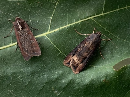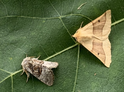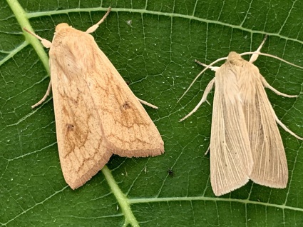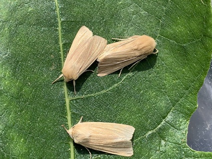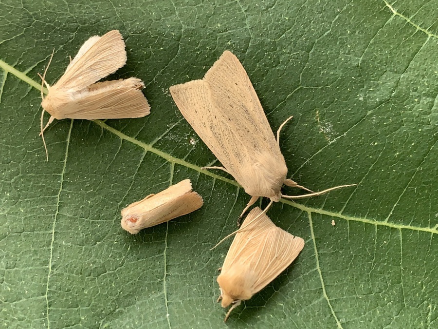 Size comparison shot - Large , Small , flanked by 2 Common Wainscots - 28/8